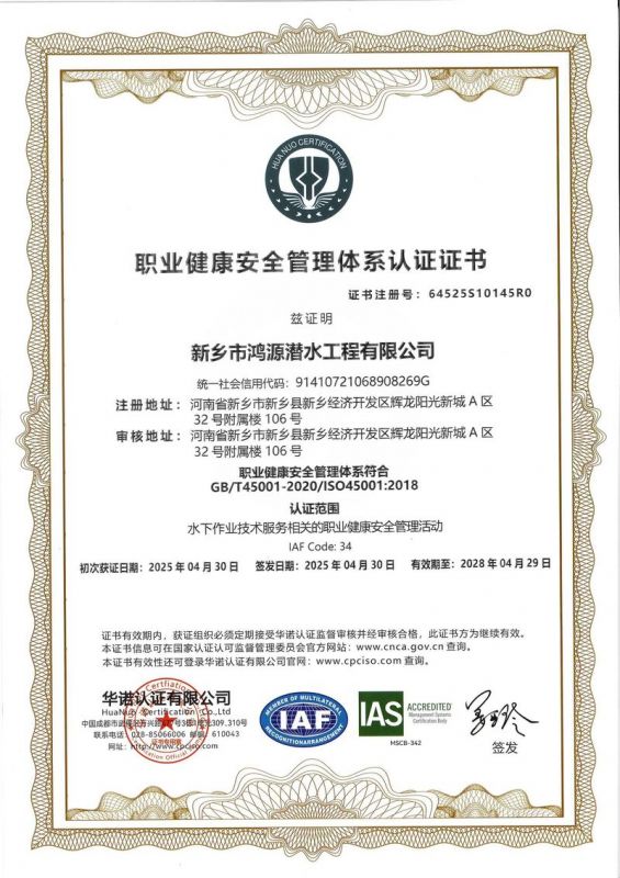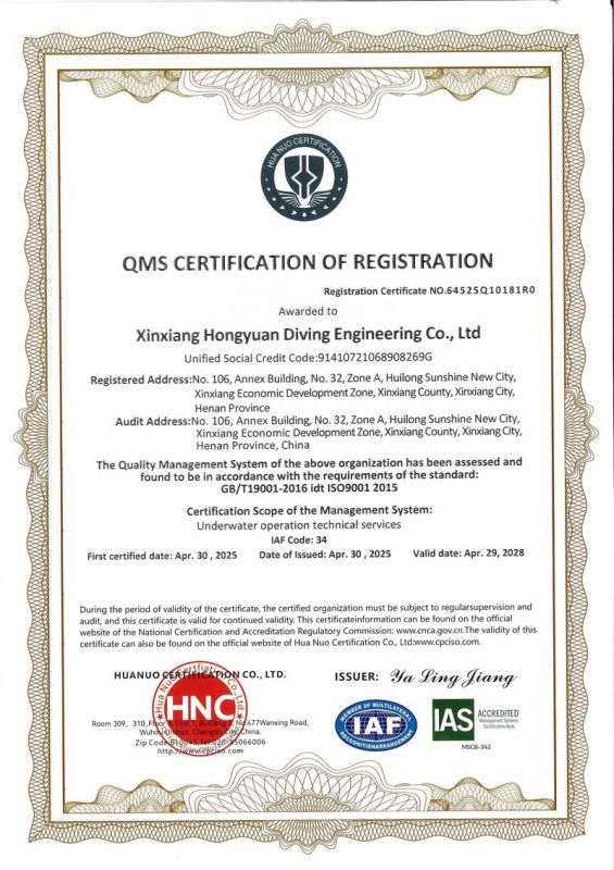 新鄉(xiāng)市鴻源潛水工程有限公司,有從事潛水行業(yè)二十多年的潛水團隊。公司具有獨立法人資格,注冊資金600萬元。   公司的潛水人員、潛水檢測人員、潛水焊接人員均經(jīng)過正規(guī)培訓,全部持有國內(nèi)權(quán)威機構(gòu)頒發(fā)的資質(zhì)證書。我公司水下焊接可靠,質(zhì)量優(yōu)良,技術(shù)過硬,可水下焊接鋼管樁,水下焊接犧牲陽極鋅塊,水下焊接連接梁,水下封堵焊接等等施工,報價合理,拒絕暴利,竭誠為您服務(wù)!水下電焊工程,水下電焊報價合理水廠電廠的水池、水道清淤、泵房清理、管道鋪放、攔污柵清污、更換閘門起落、導流洞、水庫壩體等維修施工水下補強加固:對水利電力系統(tǒng)水庫、大壩及沿海內(nèi)河港口、碼頭等水工建筑物水下鋼結(jié)構(gòu)或混凝土結(jié)構(gòu)缺陷進行。無論是對現(xiàn)在或?qū)恚紝⑹且豁椃浅S幸饬x的工作。水下焊接將成為水下作業(yè),水下安裝,水下維修等水下作業(yè)工程中不可或缺的重要工藝手段.公司堅持“先進的技術(shù)設(shè)備.優(yōu)質(zhì)的服務(wù)質(zhì)量.服務(wù)效率.熱情的服務(wù)態(tài)度,為生產(chǎn)經(jīng)營理念,以拒絕暴利合理收費為原則立足全國市場。我們將以優(yōu)質(zhì)的產(chǎn)品與售后服務(wù)來打造用戶良好體驗。愿同新老客戶竭誠合作、互惠互利、共創(chuàng)輝煌!水下電焊工程,水下電焊報價合理,鋼圍堰清淤公司鴻源-水下電焊工程,水下電焊報價合理,鋼圍堰清淤公司,水下電焊工程。      新鄉(xiāng)市鴻源潛水工程有限公司我公司成功打造鴻源優(yōu)質(zhì)服務(wù)。公司的潛水人員、潛水檢測人員、潛水焊接人員均經(jīng)過正規(guī)培訓,全部持有國內(nèi)權(quán)威機構(gòu)頒發(fā)的資質(zhì)證書。經(jīng)過多年經(jīng)營,公司具備公司具有獨立法人資格。
